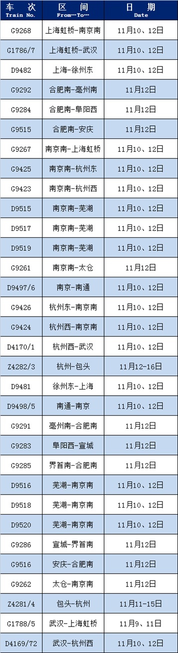 為滿足旅客出行需求,長(zhǎng)三角鐵路加大運(yùn)能供給,恢復(fù)開(kāi)行、增開(kāi)多趟旅客列車,快來(lái)看看有沒(méi)有你需要的車次↓