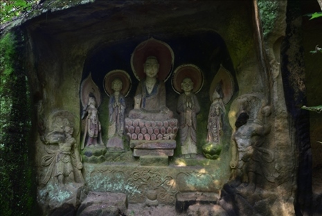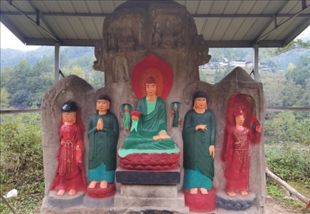 此外在四川廣安、資陽(yáng)、內(nèi)江等地也存在類(lèi)似情況。位于廣安市經(jīng)開(kāi)區(qū)的金鳳山摩崖造像,開(kāi)鑿于宋代,1994年當(dāng)?shù)厝罕娮阅假Y金對(duì)造像的殘缺部位進(jìn)行了修補(bǔ),并涂上紅、藍(lán)、青三色油漆。位于內(nèi)江市資中縣的羅漢洞,建于宋代,1998年,當(dāng)?shù)厝罕娮曰I資金對(duì)羅漢洞內(nèi)“拈花微笑佛”進(jìn)行裝彩重繪,目前,其余造像無(wú)妝彩重塑現(xiàn)象。此外,核查中還發(fā)現(xiàn)四川資陽(yáng)市雁江區(qū)的半月山摩崖造像,佛足部分有人為刻畫(huà)痕跡。