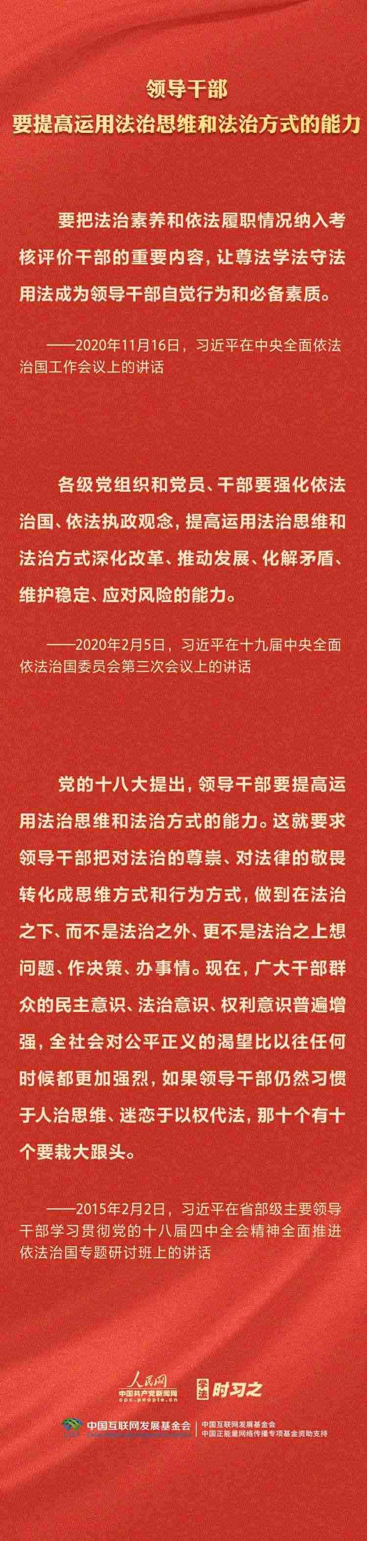 今年是貫徹落實黨的二十大精神的開局之年。中共中央政治局決定從今年4月開始,在全黨自上而下開展學(xué)習(xí)貫徹習(xí)近平新時代中國特色社會主義思想主題教育。習(xí)近平法治思想是習(xí)近平新時代中國特色社會主義思想的重要組成部分,人民網(wǎng)·中國共產(chǎn)黨新聞網(wǎng)推出學(xué)法時習(xí)之·學(xué)習(xí)習(xí)近平法治思想系列策劃,本篇聚焦“堅持抓住領(lǐng)導(dǎo)干部這個‘關(guān)鍵少數(shù)’”。