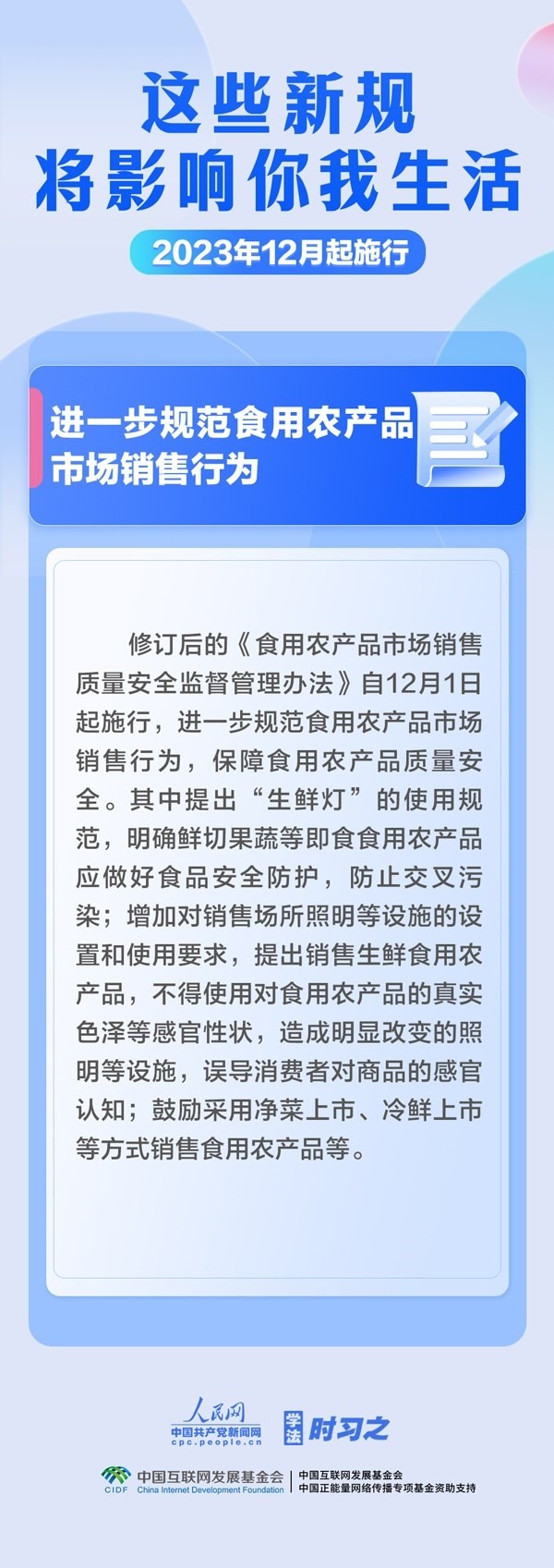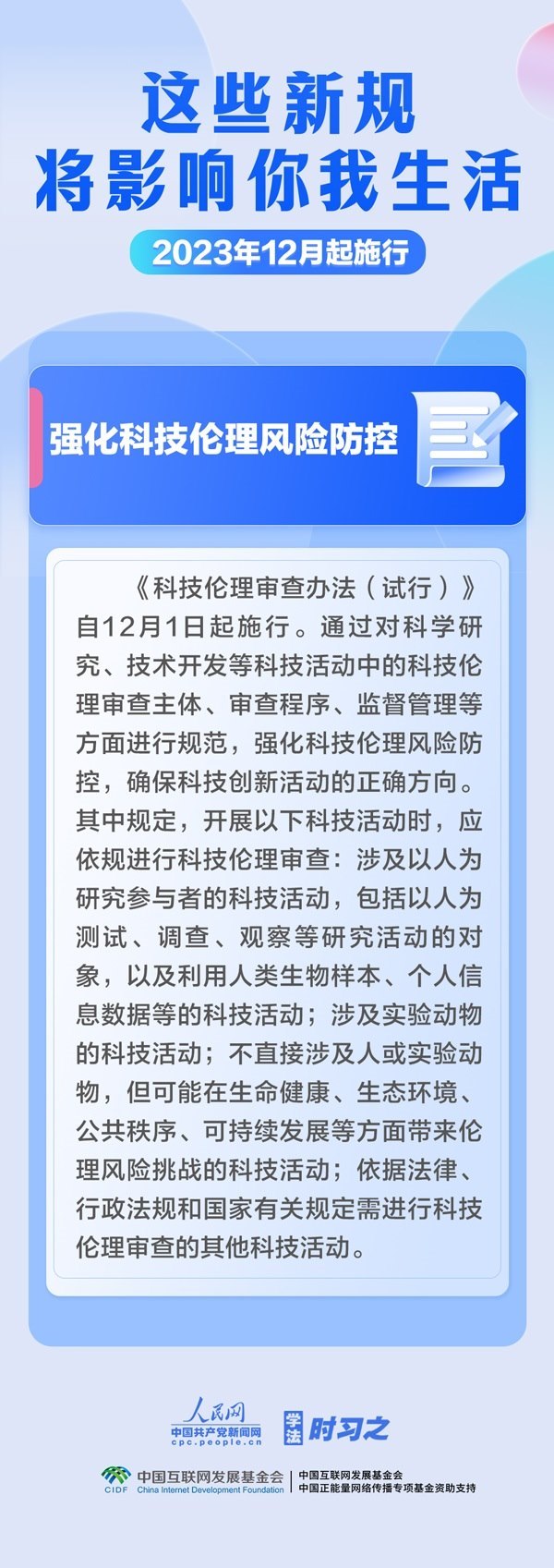 明確社保經(jīng)辦便民利民要求;強化科技倫理風(fēng)險防控;進一步規(guī)范食用農(nóng)產(chǎn)品市場銷售行為……12月,這些新規(guī)施行,將影響你我生活。