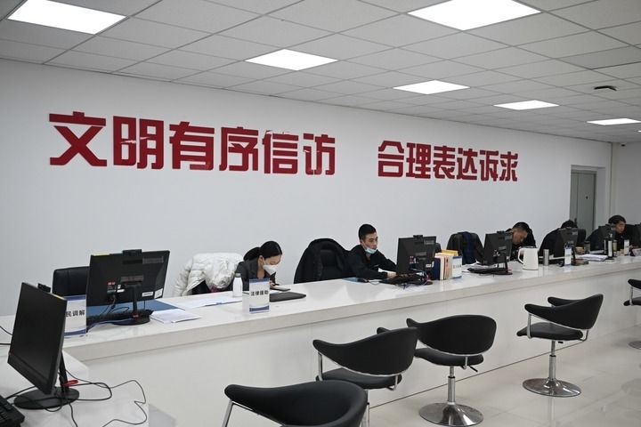 12月8日,在天津市河?xùn)|區(qū)大王莊街道社會(huì)矛盾糾紛調(diào)處化解中心,基層義務(wù)調(diào)解員在詢(xún)問(wèn)了解矛盾糾紛問(wèn)題。組圖均由新華每日電訊記者 孫凡越 攝