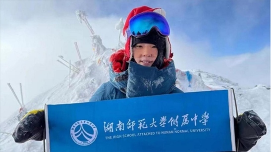 今年5月,湖南長(zhǎng)沙女高中生徐卓媛成功登頂珠穆朗瑪峰,成為中國(guó)年齡最小的從南坡登頂世界之巔的女運(yùn)動(dòng)員。