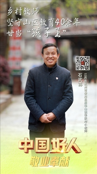 石武蓀,男,1962年5月生,中共黨員,江西省撫州市黎川縣原華山鎮(zhèn)華聯(lián)村小教師。參加工作40多年來(lái),他扎根偏遠(yuǎn)山區(qū),數(shù)次放棄進(jìn)城機(jī)會(huì),默默堅(jiān)守在離縣城30多公里的大山里,把自己的青春年華無(wú)私地奉獻(xiàn)給了山區(qū)的百姓和孩子們。
