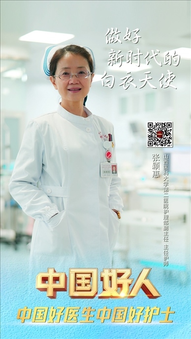 張穎惠,女,1971年12月生,中共黨員,山西醫(yī)科大學(xué)第二醫(yī)院護(hù)理部副主任、主任護(hù)師,第49屆南丁格爾獎(jiǎng)?wù)芦@得者。從事護(hù)理工作30多年,她始終撲在一線(xiàn),面對(duì)重大突發(fā)事件第一時(shí)間挺身而出;她帶領(lǐng)同事們不斷創(chuàng)新護(hù)理技術(shù),探索危重患者查房模式,構(gòu)建護(hù)理質(zhì)控體系;她積極為貧困地區(qū)、基層醫(yī)療機(jī)構(gòu)送知識(shí)、送技術(shù)、送教育、送專(zhuān)業(yè),用實(shí)際行動(dòng)詮釋了新時(shí)代白衣天使的使命與擔(dān)當(dāng)。