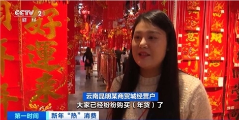云南昆明某商貿(mào)城經(jīng)營(yíng)戶:從上個(gè)月開(kāi)始,人們就已經(jīng)開(kāi)始購(gòu)買(mǎi)年貨。燈籠、福字、對(duì)聯(lián),還有窗花、擺件都是最熱銷的產(chǎn)品。采購(gòu)高峰期從這個(gè)月開(kāi)始,批發(fā)商已經(jīng)開(kāi)始補(bǔ)貨,一直會(huì)持續(xù)到臘月二十八左右。