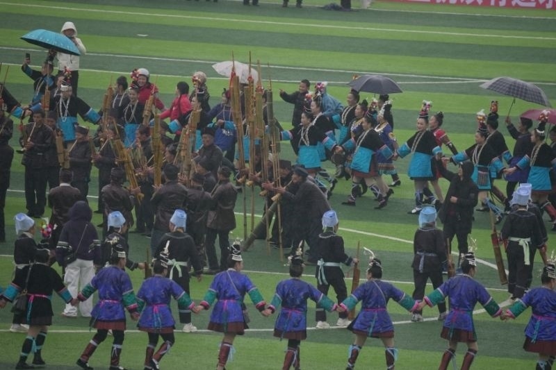 隊旗招展、蘆笙悅響、鑼鼓喧天……1月6日一早,冒著淅瀝小雨,在貴州省黔東南苗族侗族自治州榕江縣的“村超”球場,歡快的多耶舞和炫目的煙花過后,2024年“村超”賽季正式拉開帷幕。