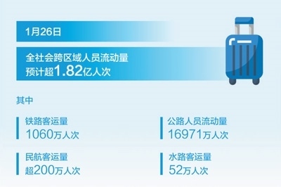 1月26日,2024年春運(yùn)大幕拉開。當(dāng)日全社會跨區(qū)域人員流動量預(yù)計(jì)超1.82億人次,其中全國鐵路預(yù)計(jì)發(fā)送旅客1060萬人次,公路16971萬人次,民航超200萬人次,水路52萬人次。“鐵路空水”密切合作,智能技術(shù)廣泛應(yīng)用,旅途服務(wù)貼心溫馨……各方協(xié)同,保障旅客安全順暢出行。