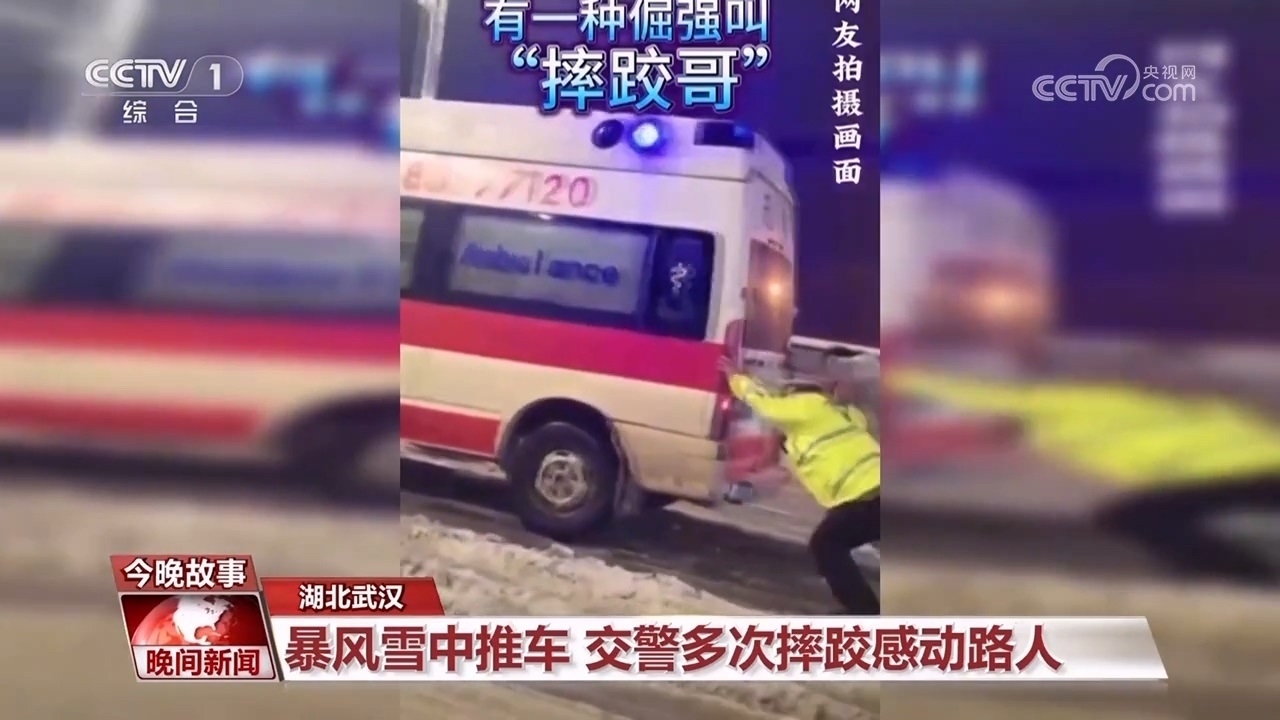 暴風(fēng)雪中推車?交警多次摔跤感動路人