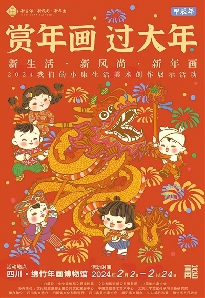 “新生活·新風(fēng)尚·新年畫(huà)——2024我們的小康生活美術(shù)創(chuàng)作展示活動(dòng)”宣傳海報(bào)。中國(guó)美術(shù)家協(xié)會(huì)供圖