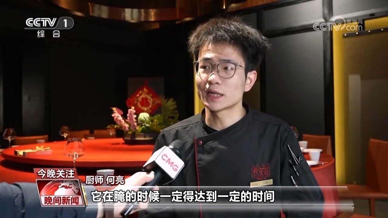 廚師 何亮:它在腌的時(shí)候一定要達(dá)到一定的時(shí)間,需要用一些香辛料,或者花椒鹽一塊去腌制它,要在十二個(gè)小時(shí)左右。蒸制的時(shí)候需要我們提前調(diào)制湯,它需要蒸兩個(gè)小時(shí)泡六個(gè)小時(shí),我們提前一天完成其他的三道工序。