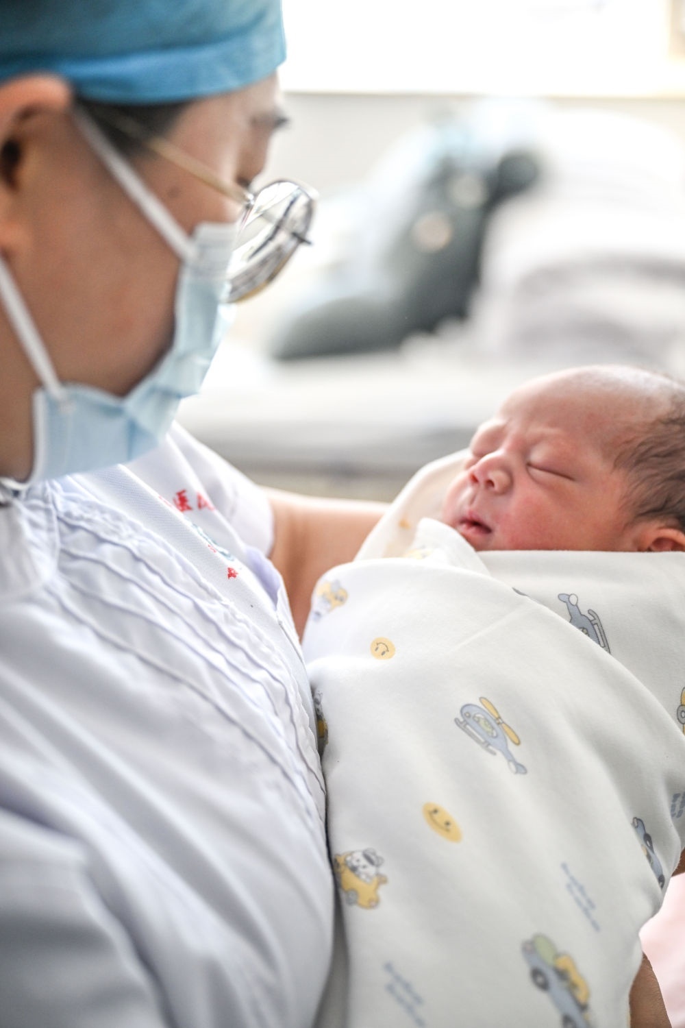 2月10日,在河北省石家莊市婦產(chǎn)醫(yī)院,一名剛出生的“龍寶寶”躺在媽媽懷里。新華社發(fā)(陳其保 攝)
