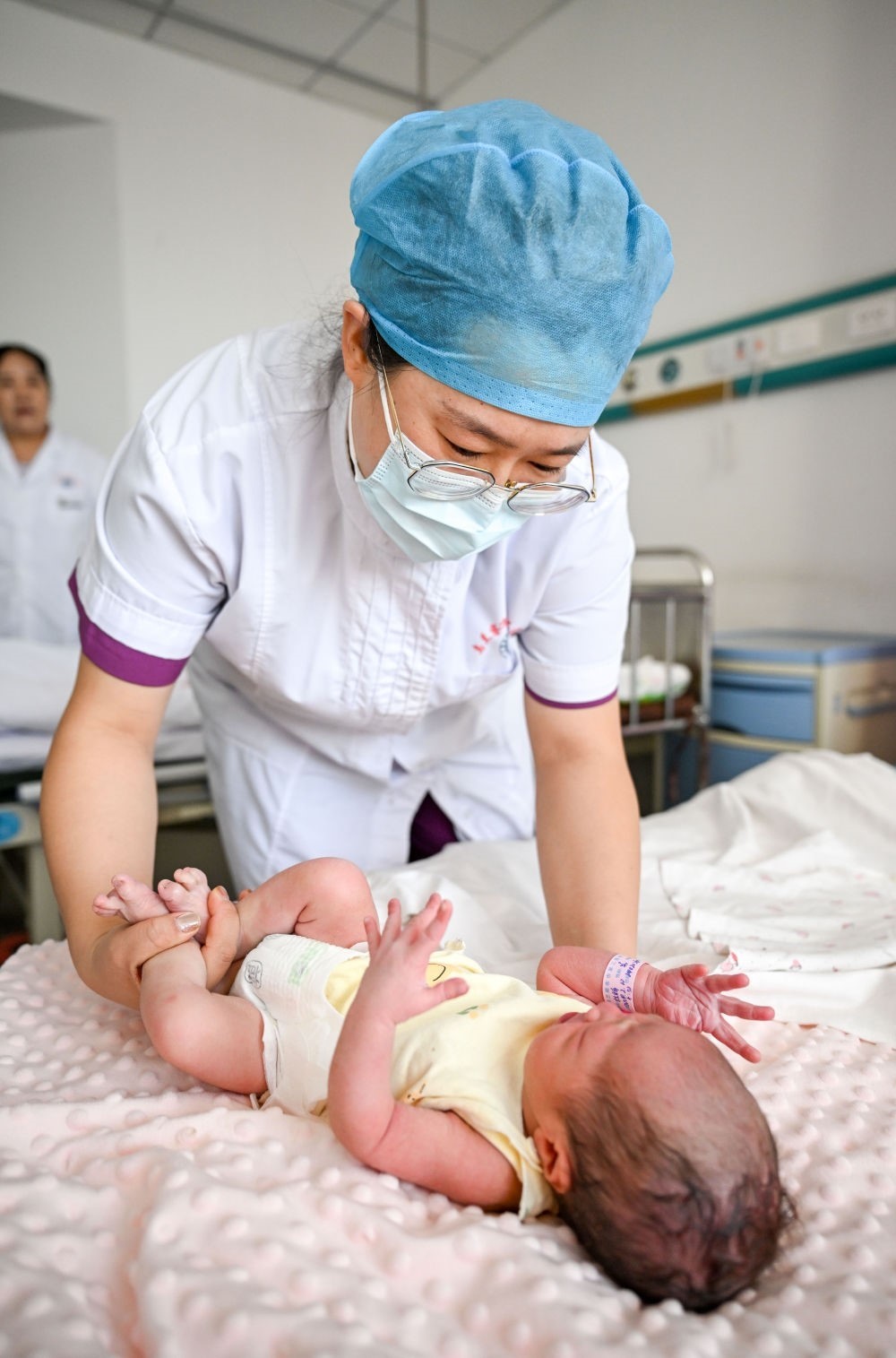 2月10日,在湖南省邵陽市隆回縣人民醫(yī)院,醫(yī)生在護(hù)理一名剛出生的“龍寶寶”。新華社發(fā)(范暉 攝)
