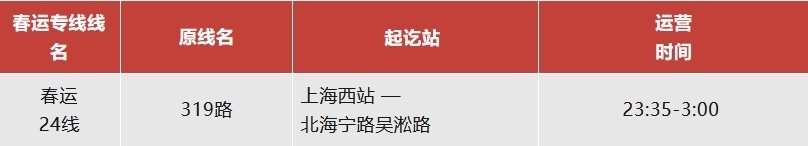 注:上海火車站春運(yùn)專線運(yùn)營(yíng)日期為2月14日至3月5日。
