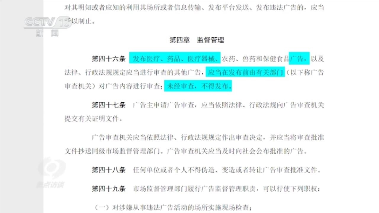 按照我國廣告法第四十六條的規(guī)定,發(fā)布醫(yī)療、藥品、醫(yī)療器械等廣告,應(yīng)當(dāng)在發(fā)布前由有關(guān)部門對廣告內(nèi)容進行審查;未經(jīng)審查,不得發(fā)布。也就是說,醫(yī)療廣告應(yīng)當(dāng)取得相應(yīng)的《醫(yī)療廣告審查證明》才能上線。但記者調(diào)查發(fā)現(xiàn),這些醫(yī)美直播帶貨作為一種醫(yī)療廣告均未獲得《醫(yī)療廣告審查證明》。