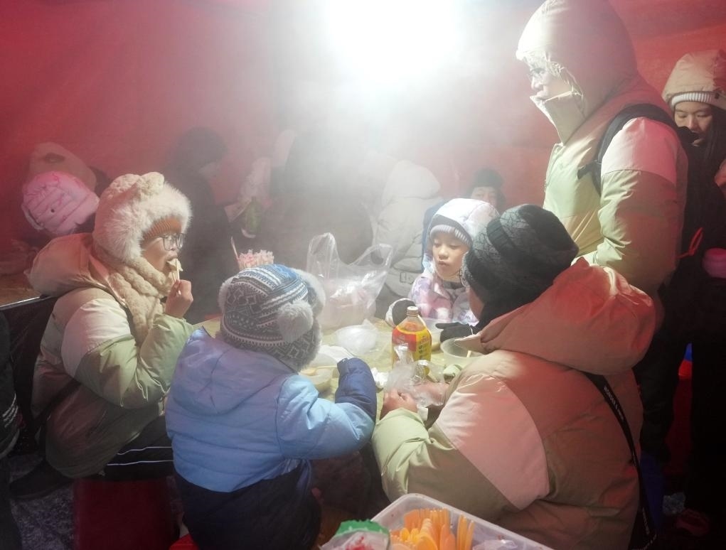 2024年1月,在哈爾濱紅專街早市,來自廣州的游客在品嘗粘豆包(1月22日攝)。 新華社記者 王毓國(guó) 攝