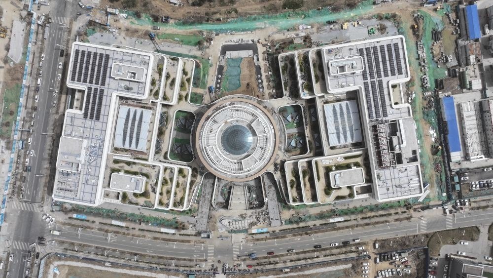 ↑這是位于雄安新區(qū)啟動區(qū)內(nèi)的中國衛(wèi)星網(wǎng)絡(luò)集團有限公司總部大樓建設(shè)現(xiàn)場(3月28日攝,無人機照片)。