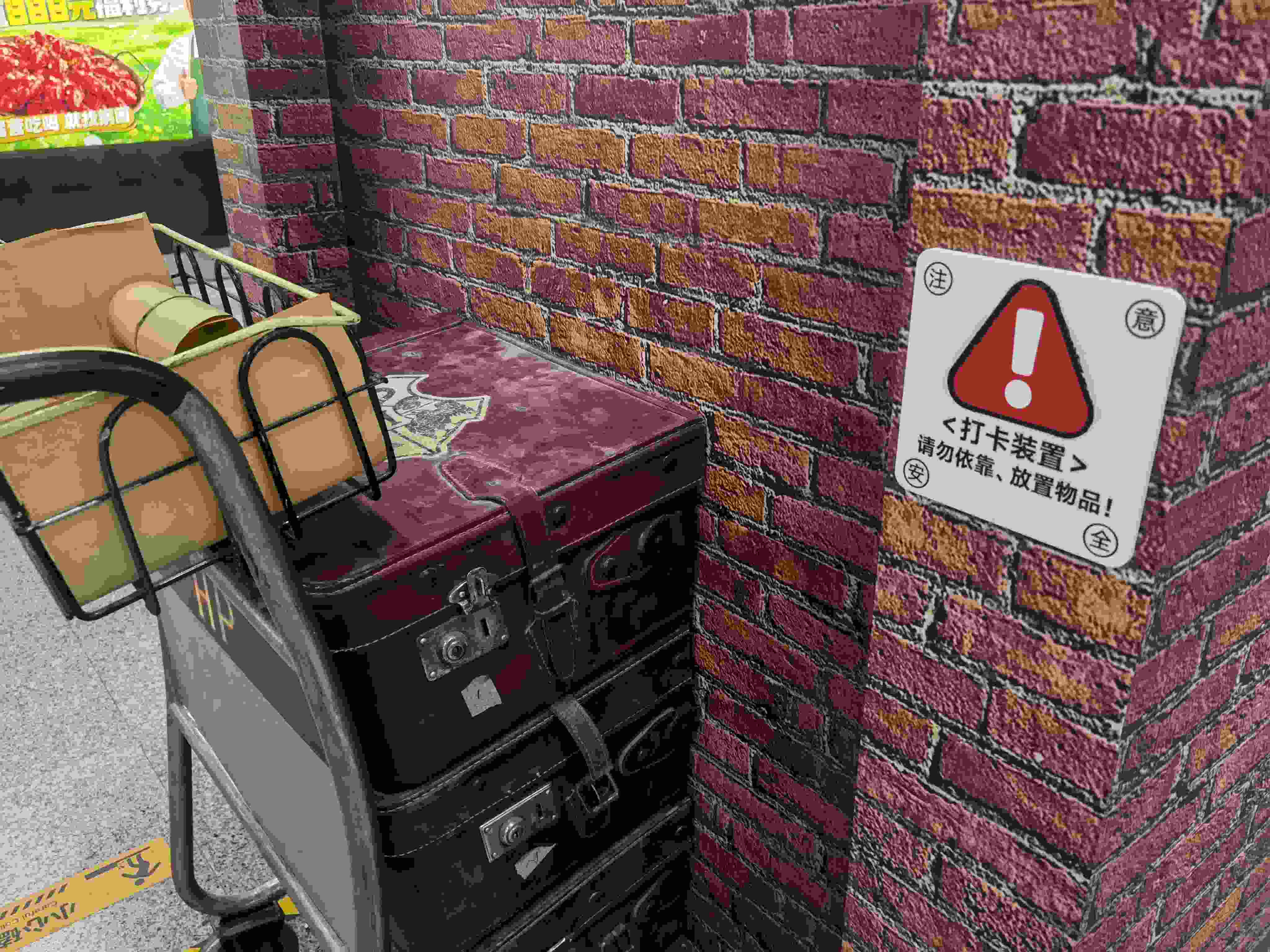 “北京也有9 站臺(tái)了!還有誰(shuí)沒(méi)去打卡?”4月9日,在不少社交平臺(tái),這處新加裝的“哈利·波特”主題景觀裝飾墻火了。4月9日下午,記者在地鐵4號(hào)線北京大學(xué)東門(mén)站的站臺(tái)上看到,站臺(tái)中間被裝飾成了《哈利·波特》經(jīng)典場(chǎng)景9 站臺(tái)的樣子。在站臺(tái)中間過(guò)道處,每一根立柱都被紅磚樣式的海報(bào)包裹。最中間的兩根立柱前,分別放置了一輛和電影中一樣“隱沒(méi)”在墻里的行李車(chē),車(chē)上有3個(gè)紅色的小皮箱和一筐黃色的紙卷軸,給整個(gè)地鐵站營(yíng)造出一種復(fù)古的魔法風(fēng),吸引了不少乘客圍觀拍照。
