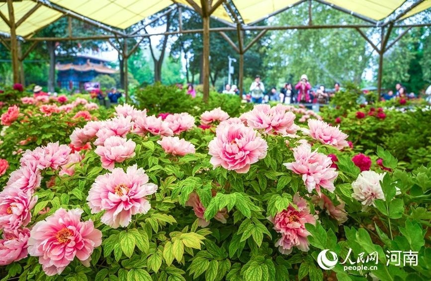 眼下,正是洛陽(yáng)牡丹盛開的季節(jié)。在王城公園內(nèi),目前共有550個(gè)品種牡丹開放,飛燕紅裝、菱花湛露、金絲貫頂、勝葛巾、姚黃、首案紅等品種牡丹,綻放出傾城之姿,吸引了海內(nèi)外游客前來(lái)賞花游園。