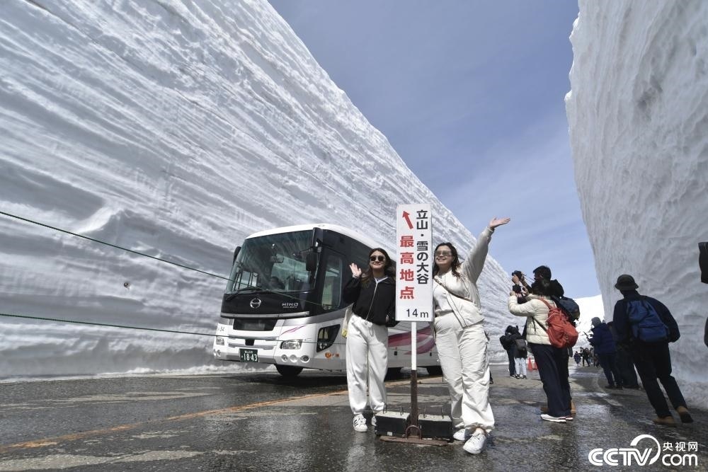 當?shù)貢r間2024年4月15日,日本富山縣立山町,日本著名的“雪墻公路”對公眾開放,兩側(cè)積雪高達14米,吸引大批游客。