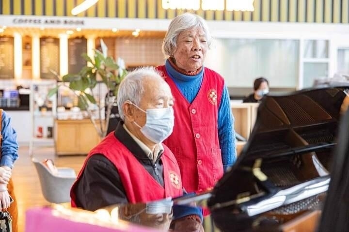 15日,在浙江臺州恩澤醫(yī)院門診大廳,患者們步履匆匆,神情嚴肅。大廳角落里,一位頭發(fā)花白、精神矍鑠的老人端坐在鋼琴前彈奏,悠揚的樂聲吸引不少患者駐足欣賞。