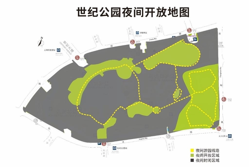 世紀公園5月1日擬實行24小時開放的區(qū)域示意圖。(園方供圖)