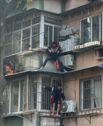 ·浙江寧波一小區(qū)陽(yáng)臺(tái)起火,快遞小哥徒手爬3樓滅火。