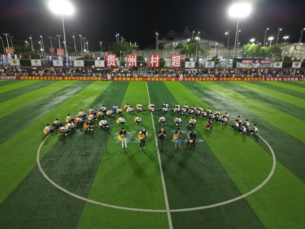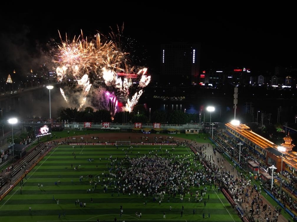 從全明星比拼,到中場的樂隊表演,再到終場的小型煙花秀,當晚的慶祝活動驚喜連連?!啊宄恢痹诔掷m(xù)打造文體‘嘉年華’,不斷豐富賽事內(nèi)容,力爭給球迷和游客帶來全新的體驗和持續(xù)的歡樂?!辟F州“村超”組委會成員、榕江縣文化館館長李莎介紹,“村超”新賽季開啟決賽階段的比賽以來,除了延續(xù)上賽季的拉拉隊巡演、美食投喂、中場表演等精彩內(nèi)容外,還推出了“全民K歌”和“萬人蹦迪”等活動,體驗感和歡樂度都得到了提升。