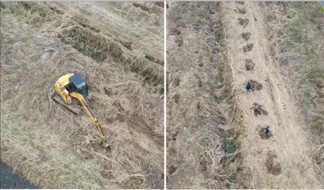 督察組暗查發(fā)現(xiàn),益陽(yáng)市南洞庭湖省級(jí)自然保護(hù)區(qū)歐美黑楊已清退區(qū)域正在挖坑種樹。(督察組供圖)
