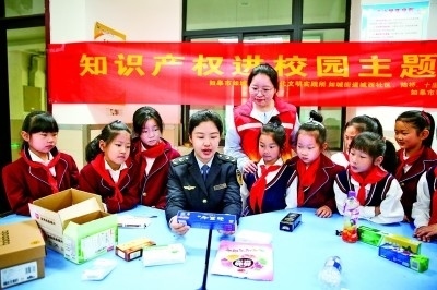 江蘇如皋市版權(quán)局聯(lián)合市場(chǎng)監(jiān)督等部門(mén),圍繞商標(biāo)權(quán)、專(zhuān)利權(quán)等開(kāi)展“知識(shí)產(chǎn)權(quán)進(jìn)校園”宣傳教育活動(dòng)。新華社發(fā)