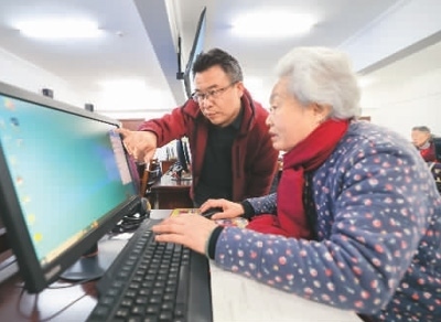 湖北省襄陽市老年大學課堂上,教師為學員講解如何使用聊天軟件。楊 東攝(人民視覺)