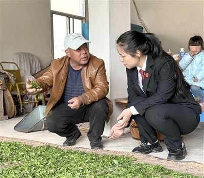 在茶園,法庭干警們向茶農(nóng)了解了茶葉產(chǎn)出和銷售情況,為茶農(nóng)詳細講解了茶葉在種植、采摘、加工、包裝過程中易發(fā)生的法律問題,解答了茶農(nóng)的法律疑問。同時,結(jié)合茶農(nóng)身邊發(fā)生的典型案例,用群眾聽得懂的語言,為茶農(nóng)講解了茶葉在運輸、銷售過程中應(yīng)防范的法律風險,提升茶農(nóng)的法律意識,受到了茶農(nóng)的一致好評。