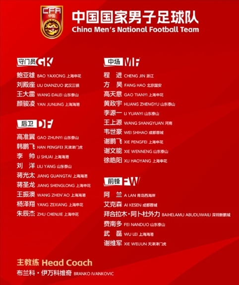 ·國足公布6月世預(yù)賽大名單。