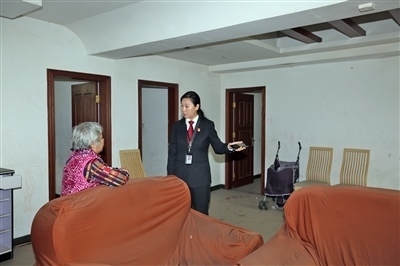 黃麗芳做拍賣房屋內(nèi)居住人員思想工作。 羅志航 攝