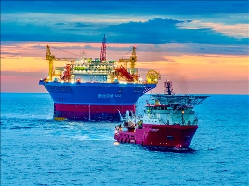 ·我國自主設(shè)計建造的亞洲首艘圓筒型“海上油氣加工廠”——“??惶枴边\抵作業(yè)海域。