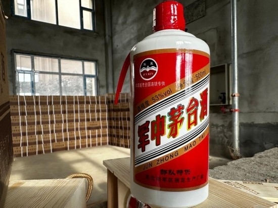 一架騰空而起的戰(zhàn)斗機(jī)圖案取代了飛天女神圖案,包裝盒上赫然印著“部隊專用”字樣……看起來頗像“茅臺”的“特供酒”,實際上沒一瓶是真的。