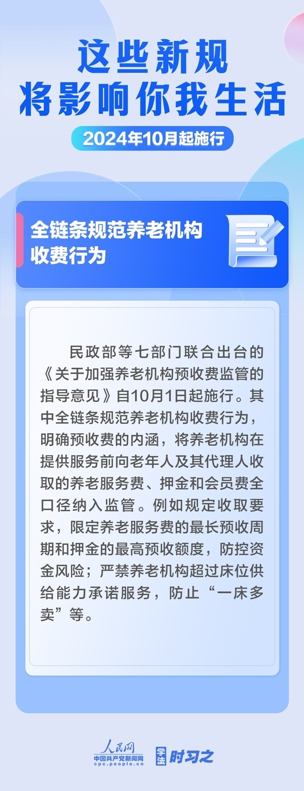 增加軍人撫恤優(yōu)待措施;全鏈條規(guī)范養(yǎng)老機(jī)構(gòu)收費(fèi)行為;電動(dòng)自行車用鋰電池實(shí)施強(qiáng)制性產(chǎn)品認(rèn)證……10月起,這些新規(guī)施行,將影響你我生活。