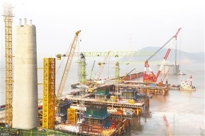 西堠門公鐵兩用大橋墩身施工現(xiàn)場(chǎng)。弋鵬麗攝