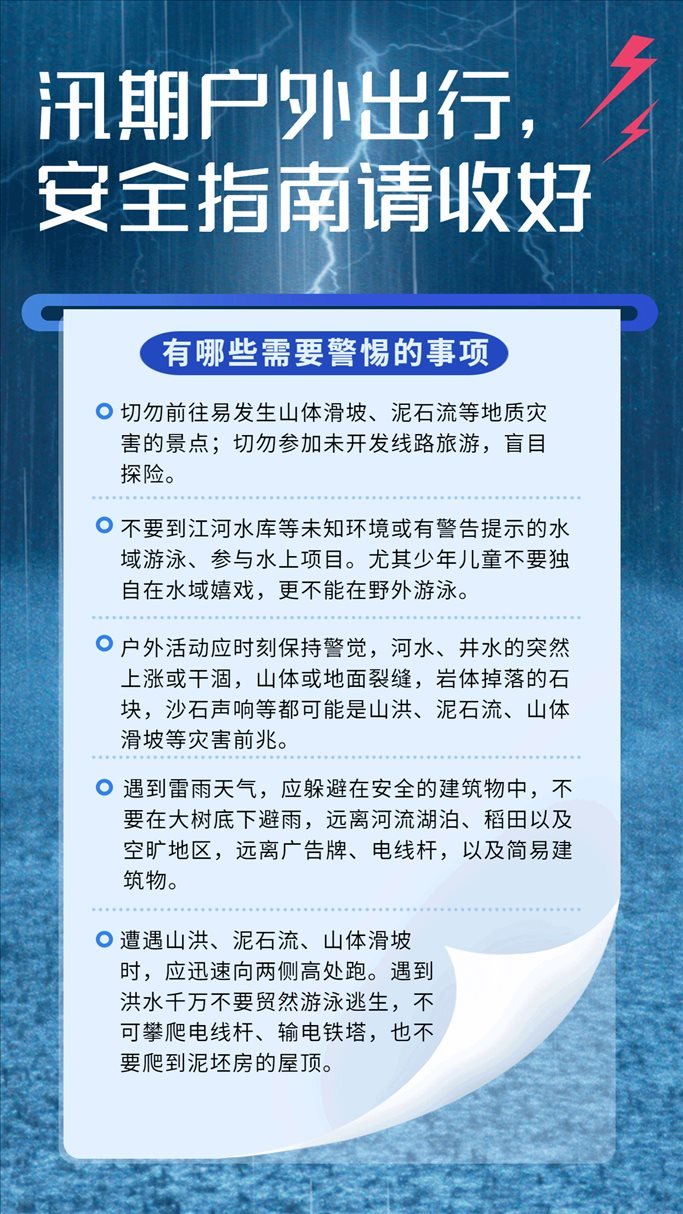 當(dāng)前正值暑假旅游旺季,也是汛期災(zāi)害事故易發(fā)多發(fā)時(shí)期。外出游玩時(shí)需要做好哪些安全防范工作?出游時(shí)又有哪些需要警惕的事項(xiàng)?一起來(lái)了解。