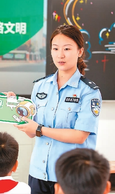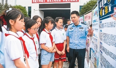 江西省宜春市公安局袁州分局鳳凰派出所民警在黃頗小學向學生講解防范網(wǎng)絡詐騙等知識。周 亮攝(人民視覺)