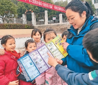 在湖南省江永縣實驗小學,該縣農(nóng)商銀行工作人員為小學生宣講網(wǎng)絡金融知識。潘百旺攝(人民視覺)