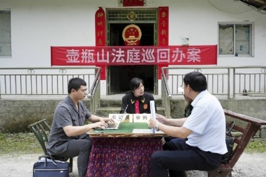 近日,湖南省石門縣人民法院壺瓶山人民法庭將庭審現(xiàn)場“搬”到石門縣南北鎮(zhèn)金家河村,審理了一起宣告死亡案件,為居住在大山深處出行不便的田大爺解決了一樁憂心事。
