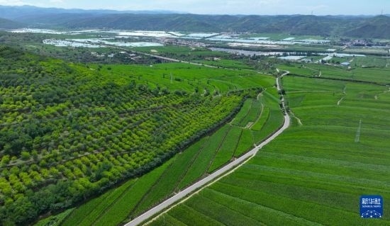 這是寧夏固原市隆德縣沙塘鎮(zhèn)境內(nèi)的一條柏油農(nóng)村公路(7月26日攝,無人機(jī)照片)。
