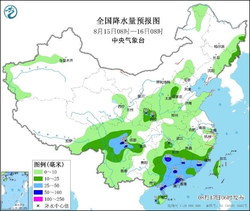 未來三天,江南南部、華南及四川盆地等地部分地區(qū)有分散性強降雨,并伴有強對流天氣,降雨強度大;西北地區(qū)東部、內蒙古、華北、東北地區(qū)、黃淮等地有一次降雨過程,青海、甘肅、寧夏、陜西等地部分地區(qū)已出現(xiàn)較強降雨,需防范持續(xù)降雨和局地短時強降雨可能引發(fā)的次生災害。由于副熱帶高壓減弱和降雨鋪展,高溫明顯減弱。高溫主要集中在四川盆地,湖北、湖南、浙江、江蘇等地雖有高溫,但范圍較小。