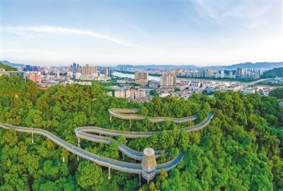 生態(tài)道福建福州市在建設“福道”時,采取鋼結(jié)構(gòu)高架、鏤空橋面棧道、節(jié)點大跨度橋梁等創(chuàng)新設計,最大限度保護森林原生態(tài)。林雙偉攝(人民視覺)