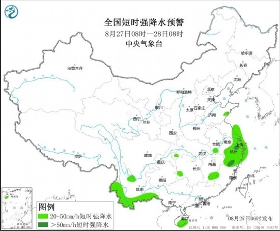 中新網(wǎng)8月27日電 據(jù)中央氣象臺網(wǎng)站消息,中央氣象臺8月27日6時發(fā)布強對流天氣藍(lán)色預(yù)警:預(yù)計8月27日8時至28日8時,內(nèi)蒙古地區(qū)東北部、江淮東部、江南東北部和南部、西南地區(qū)東南部等地的部分地區(qū)將有8級以上雷暴大風(fēng)或冰雹天氣;黃淮東部、江漢西部、江淮西南部和東部、江南中東部、西南地區(qū)南部、華南南部等地的部分地區(qū)將有小時雨量大于20毫米的短時強降水天氣,其中,浙江北部和南部、福建北部等地的部分地區(qū)小時雨量大于50毫米,最大可達(dá)80毫米以上。