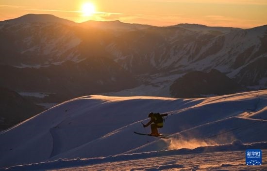 夕陽(yáng)西下,滿德力在吉克普林國(guó)際滑雪度假區(qū)巡邏(12月3日攝)。
