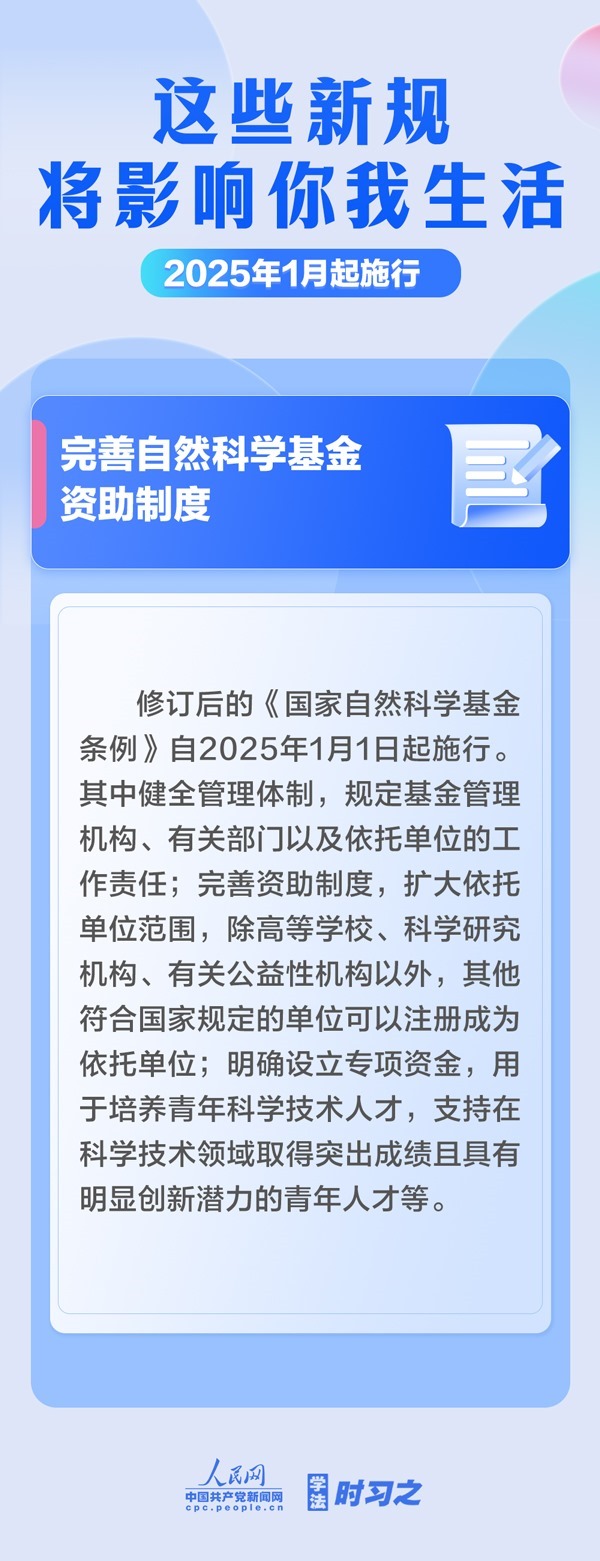 明確不授予學位或者撤銷學位的三種情形;支持優(yōu)先開發(fā)利用可再生能源;漸進式延遲法定退休年齡;完善自然科學基金資助制度……2025年1月起,這些新規(guī)施行,將影響你我生活。