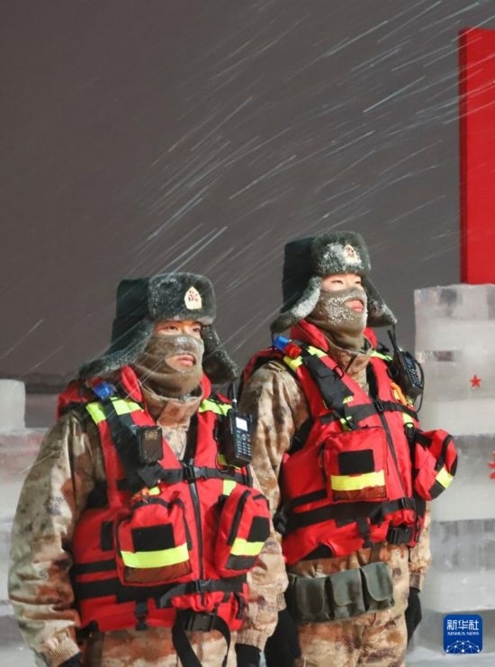 1月29日,陸軍某邊防旅官兵在中俄界江冰哨站崗執(zhí)勤。
