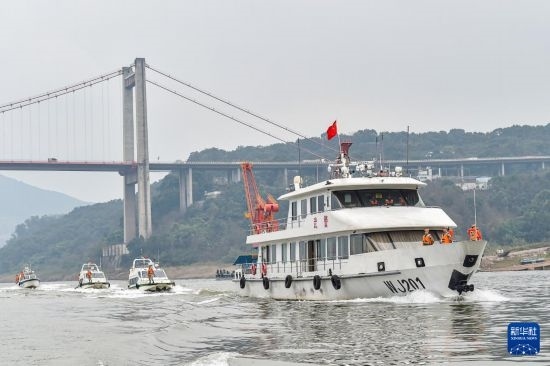 1月29日,武警重慶總隊(duì)船艇支隊(duì)官兵在長(zhǎng)江重慶段水域巡邏。