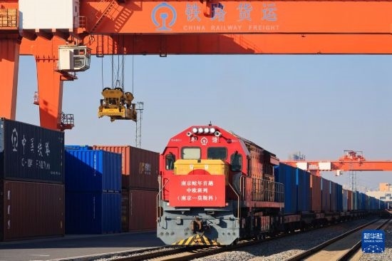 當日是農(nóng)歷大年初一,一列滿載110標箱紡織品、汽車配件、電子機械設(shè)備等貨物的中歐班列從南京鐵路物流中心堯化門站貨場啟程,開往俄羅斯莫斯科。這是農(nóng)歷新年南京開出的首趟中歐班列。